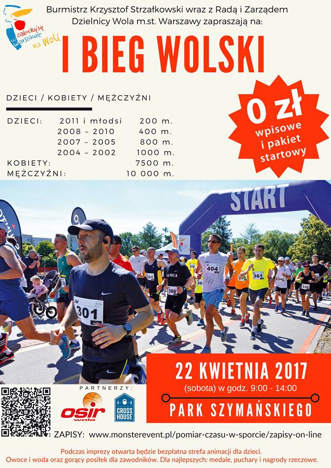 22.04.2017 brałem udział w "BIEGU WOLSKIM" rozegranym na dystansie 10 km. Do biegu nie trenowałem biegowo, poszedłem "z marszu". Głównie zmotywowało mnie to, że bieg był za darmo- bez wpisowego :)