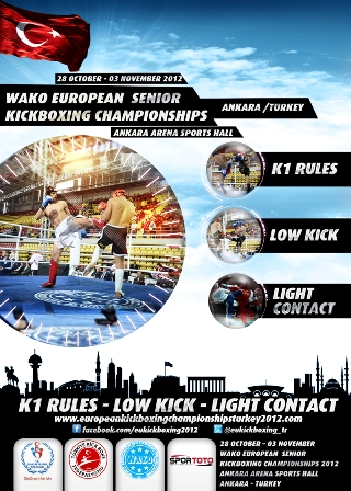 W dniach 28 października- 4 listopada odbędą się Mistrzostwa Europy Seniorów w Kickboxingu WAKO (World Association of Kickboxing Organizations) w formułach K-1 rules, low kick, light contact. Mistrzostwa rozegrają się w Ankarze w Turcji.