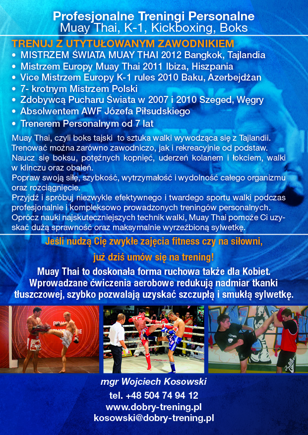 Treningi Indywidualne odbywają się w Warszawie na Woli, w Palestra Gym- najlepszym klubie Muay Thai i K-1 rules w Polsce.