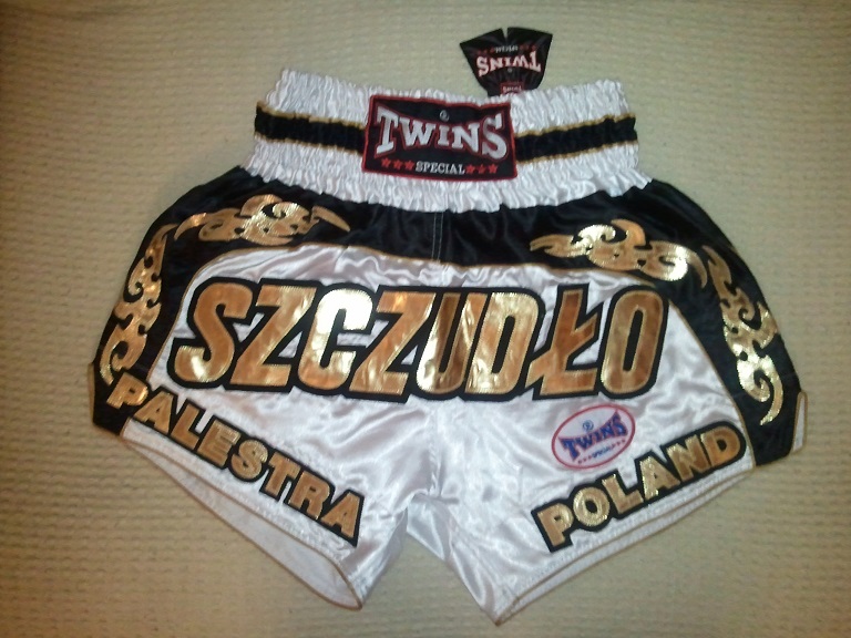 Spodenki do Muay Thai TWINS z nazwiskiem. PALESTRA, DOBRY-TRENING.pl