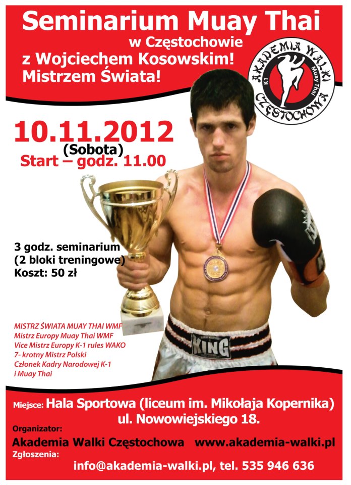 W dniu 10 listopada w Częstochowie, poprowadziłem seminarium Muay Thai, dla klubu Akademia Walki Częstochowa.