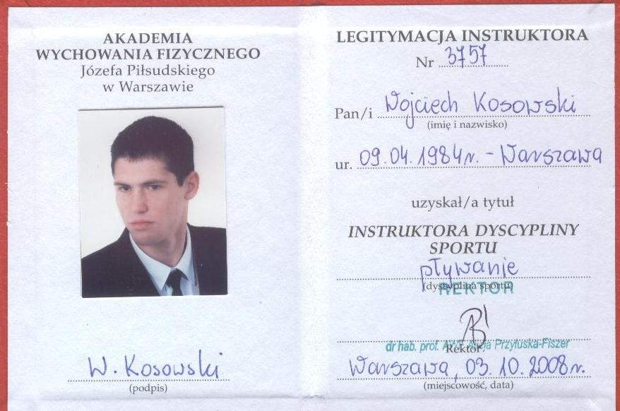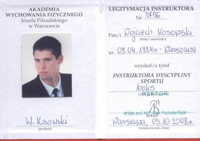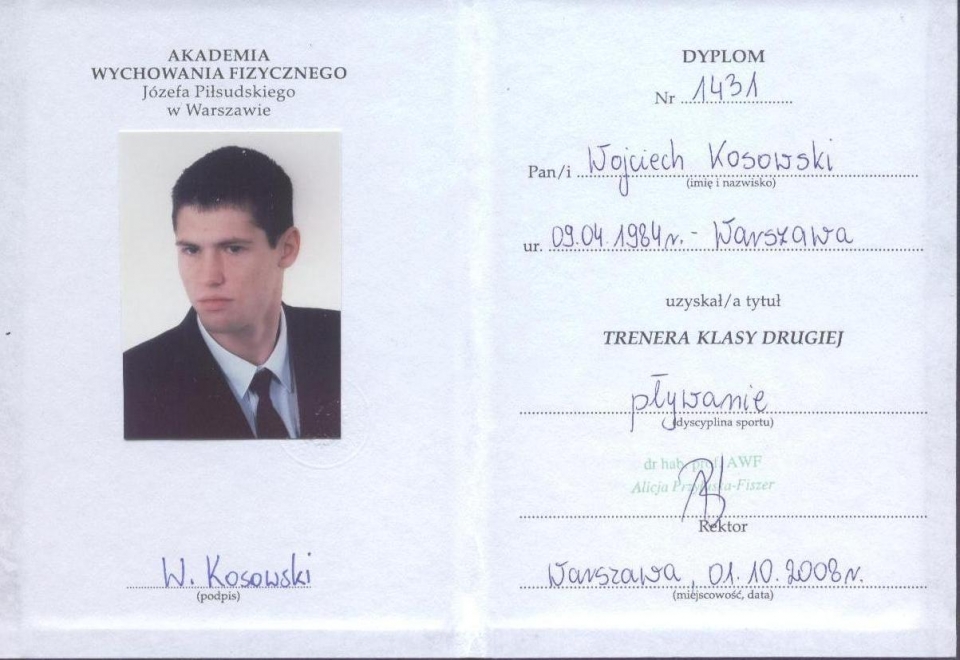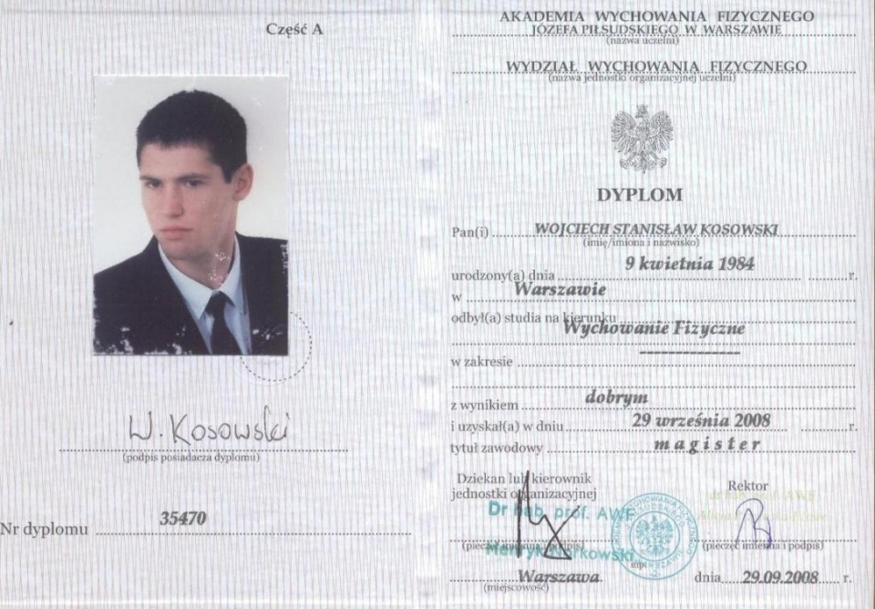 Absolwent Akademii Wychowania Fizycznego Józefa Piłsudskiego w Warszawie (Magister Kultury Fizycznej)