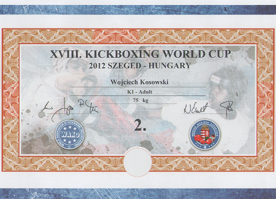 Po stoczeniu trzech walk, zająłem ostatecznie II miejsce na Pucharze Świata K-1 rules w Szeged na Węgrzech.